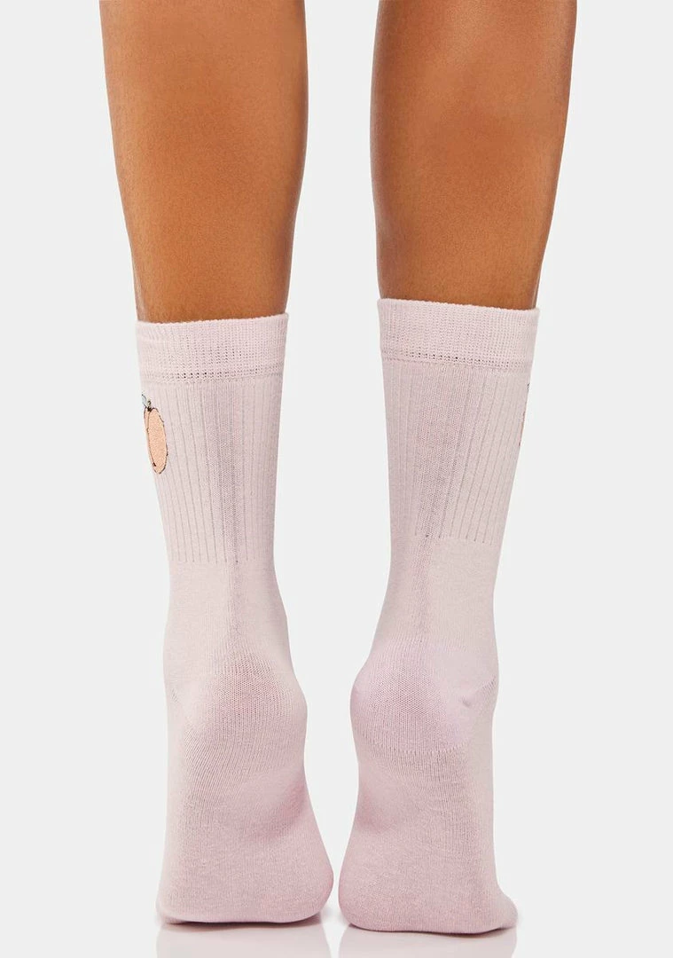 cuz you’re so keen! Be sweet in these ankle socks that have an embroidered peach design.