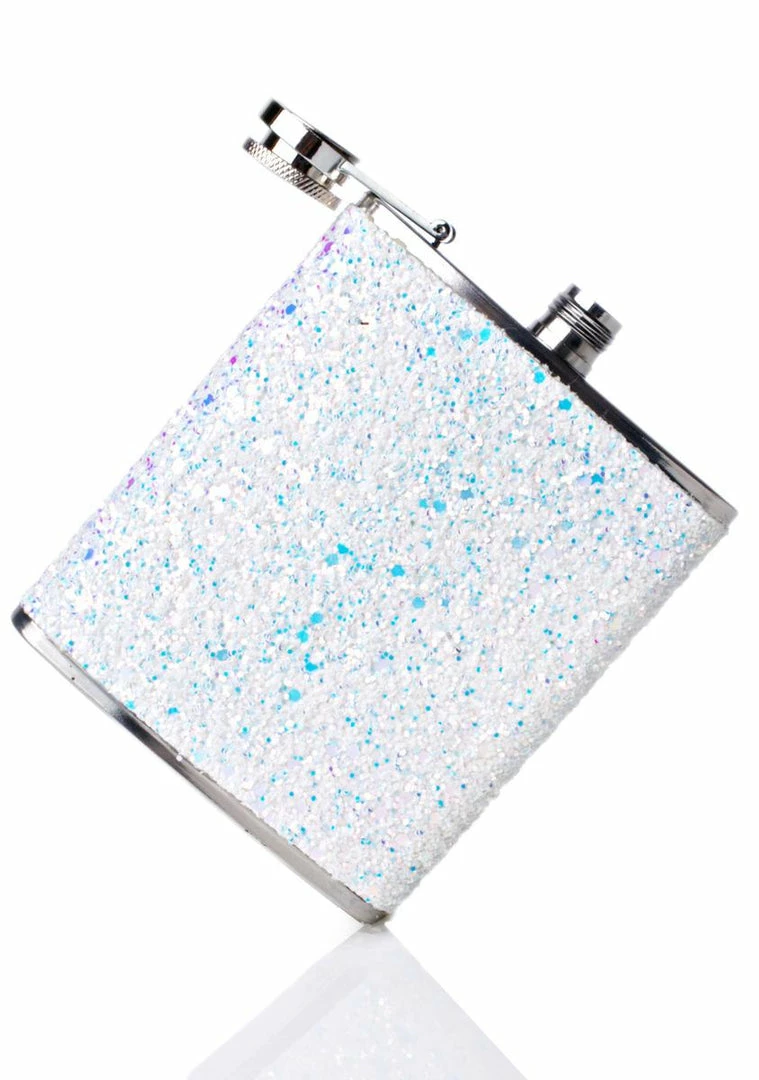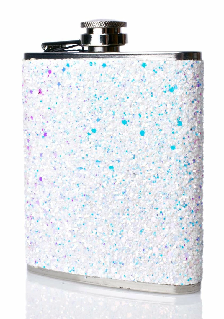 will hold a stiff, cold drink that’ll warm ya up inside. This beautiful flask features a textured exterior with a frosty white shine, sturdy stainless steel construction, and a screw cap closure.
