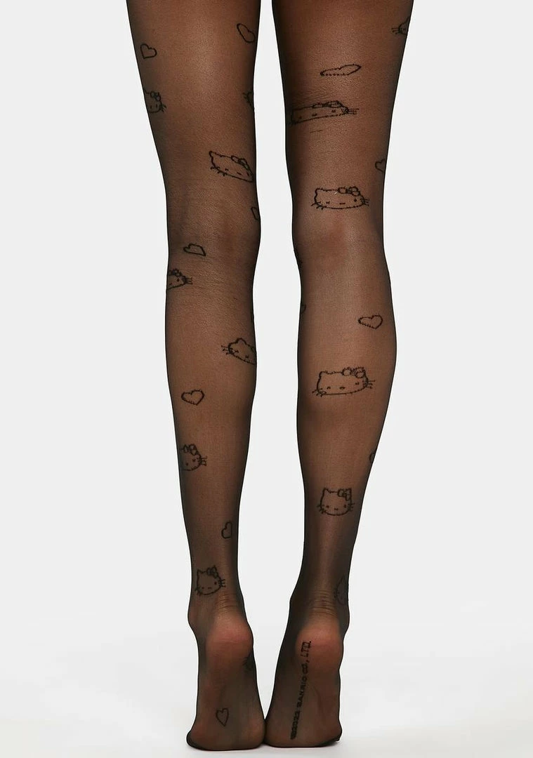 cuz she’s as cute as you. These opaque tights have a sheer construction and an all over Hello Kitty and heart print.
