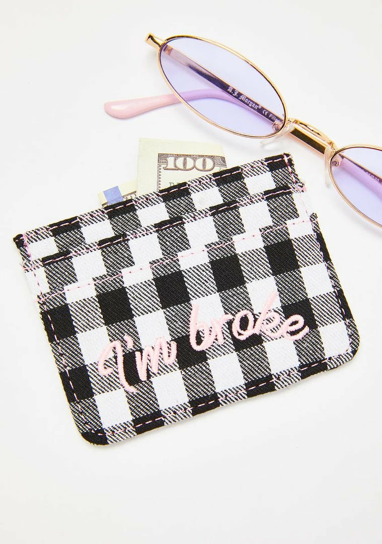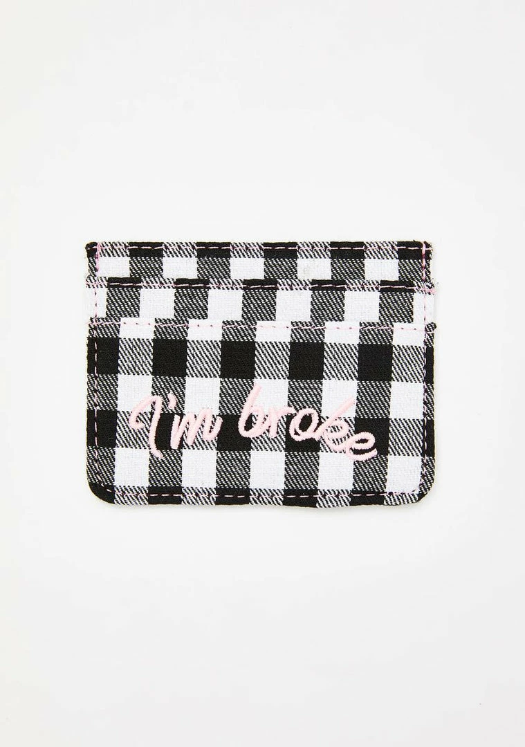 cuz youรขยยve got exxxpensive taste! Reach your credit limit with this dope lil card holder that has a plaid print all ova and embroidered text graphics.