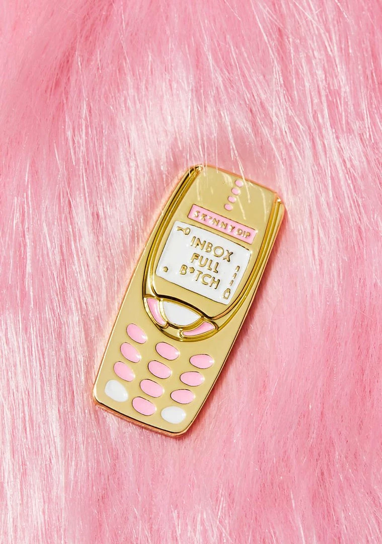 cuz youâre line is hot babe! Hitting you up late night with this dope gold pin of a lil olâ skool cell phone that says âinbox full b*tchâ.