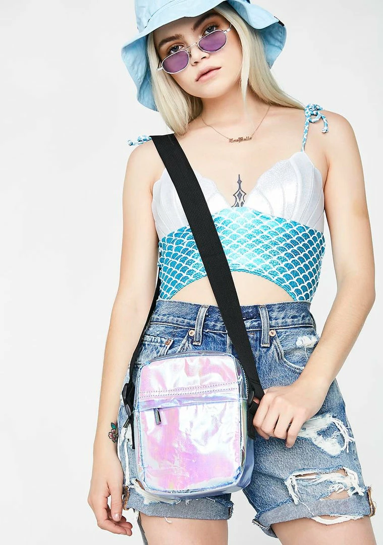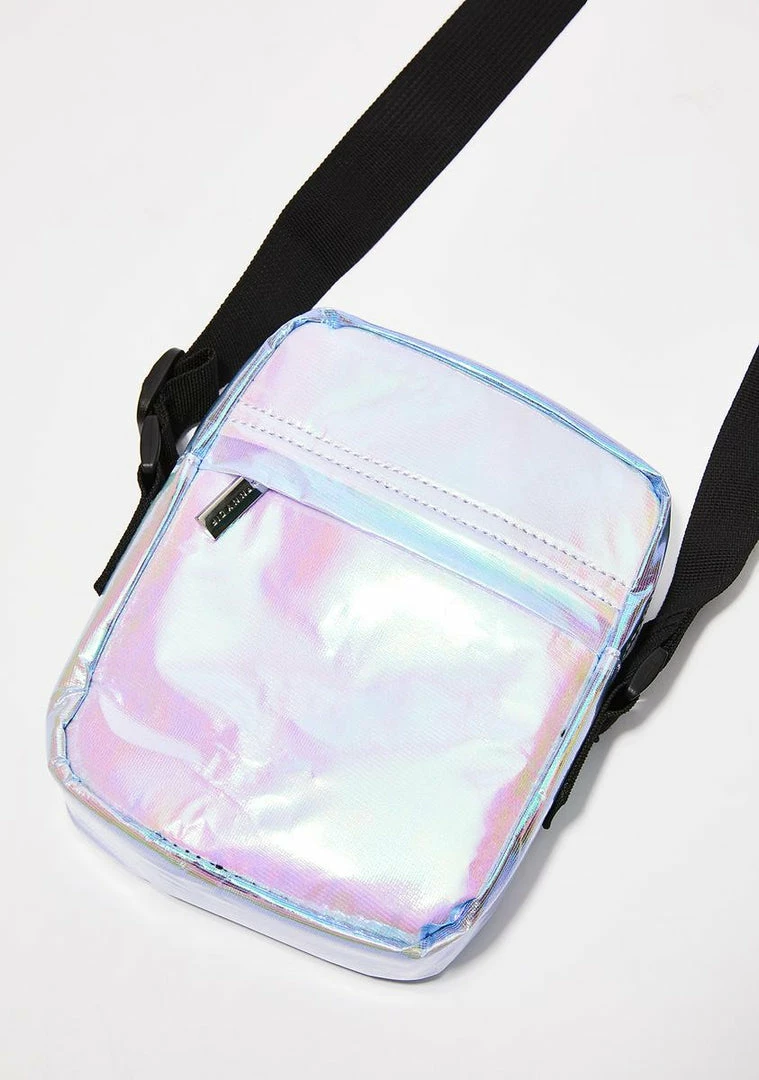 cuz they got you feelinΓ’ΒΒ higher than eva. Feel like you came down from heaven with this crossbody bag that has a futuristic hologram detail all ova, two zip pockets and an adjustable strap.