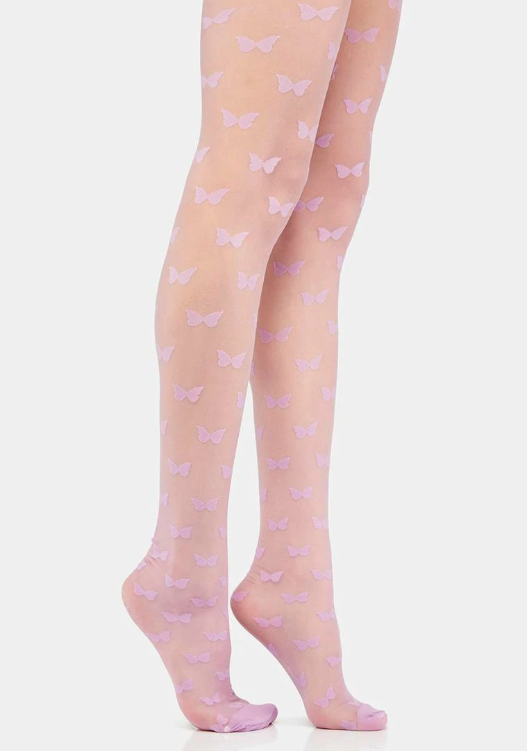 cuz it’s all about you. These sheer tights have an opaque design and an all over butterfly print.